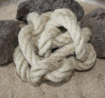 De dood en het lijden hebben niet het laatste woord bij God: 'God heeft ons bestaan uit de knoop gehaald' horen we in het versje. Wikkel om het ontknoopte touw een klimoprank en laat dit klimop-touw vanuit een (graf)steen de hoogte, de hemel in gaan.
