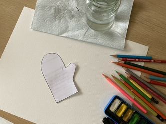 1. Teken met potlood midden op het vel twee wanten, de duimen naar elkaar.